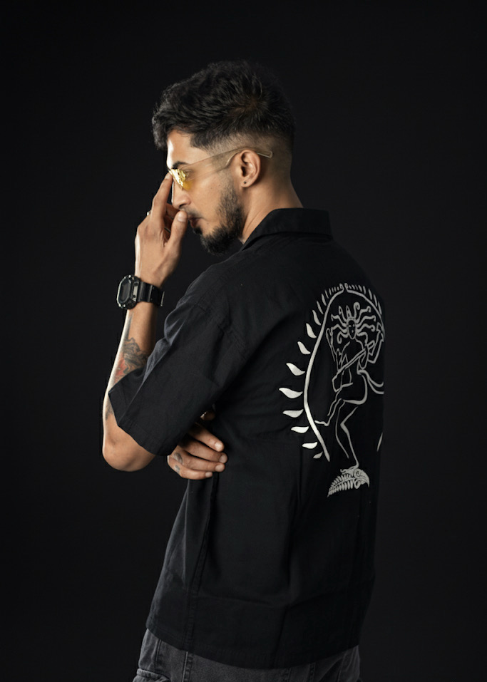 Celebrate movement, art, and cosmic balance with the Cosmic Dance shirt. This black unisex shirt features an intricate Nataraja print on the back — a timeless symbol of rhythm and creation. Made from premium cotton with a relaxed fit, it’s perfect for those who want minimalism in the front and a powerful statement at the back. Wear it to stand out without saying a word.