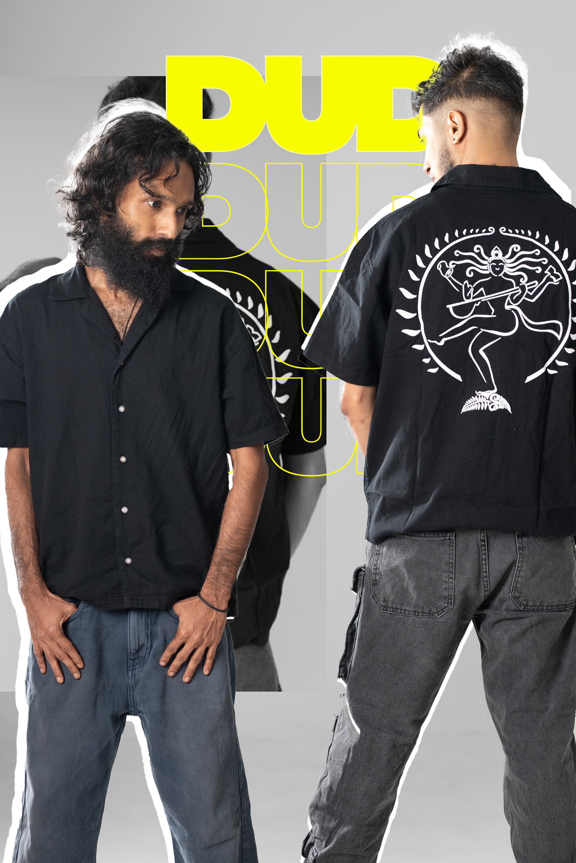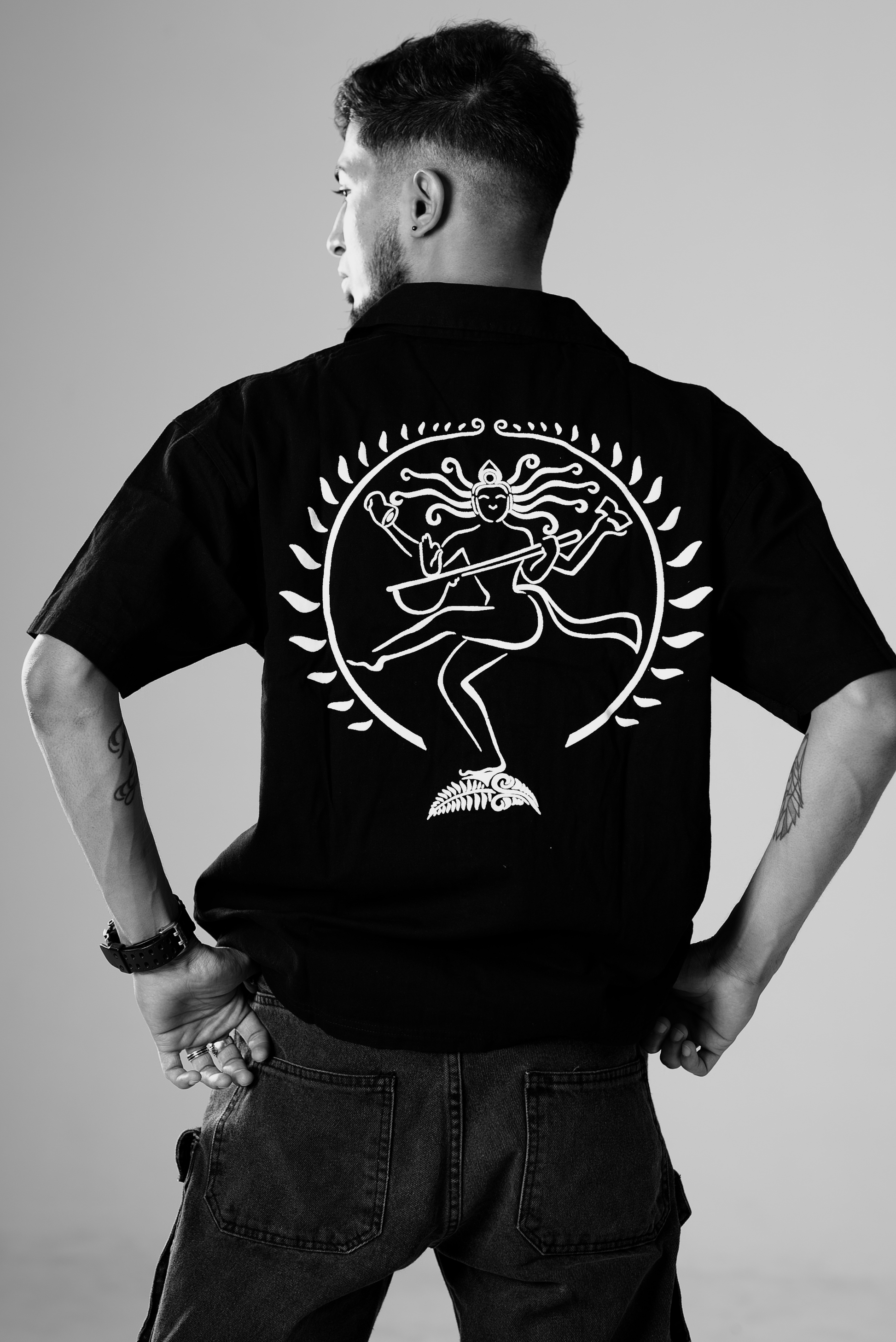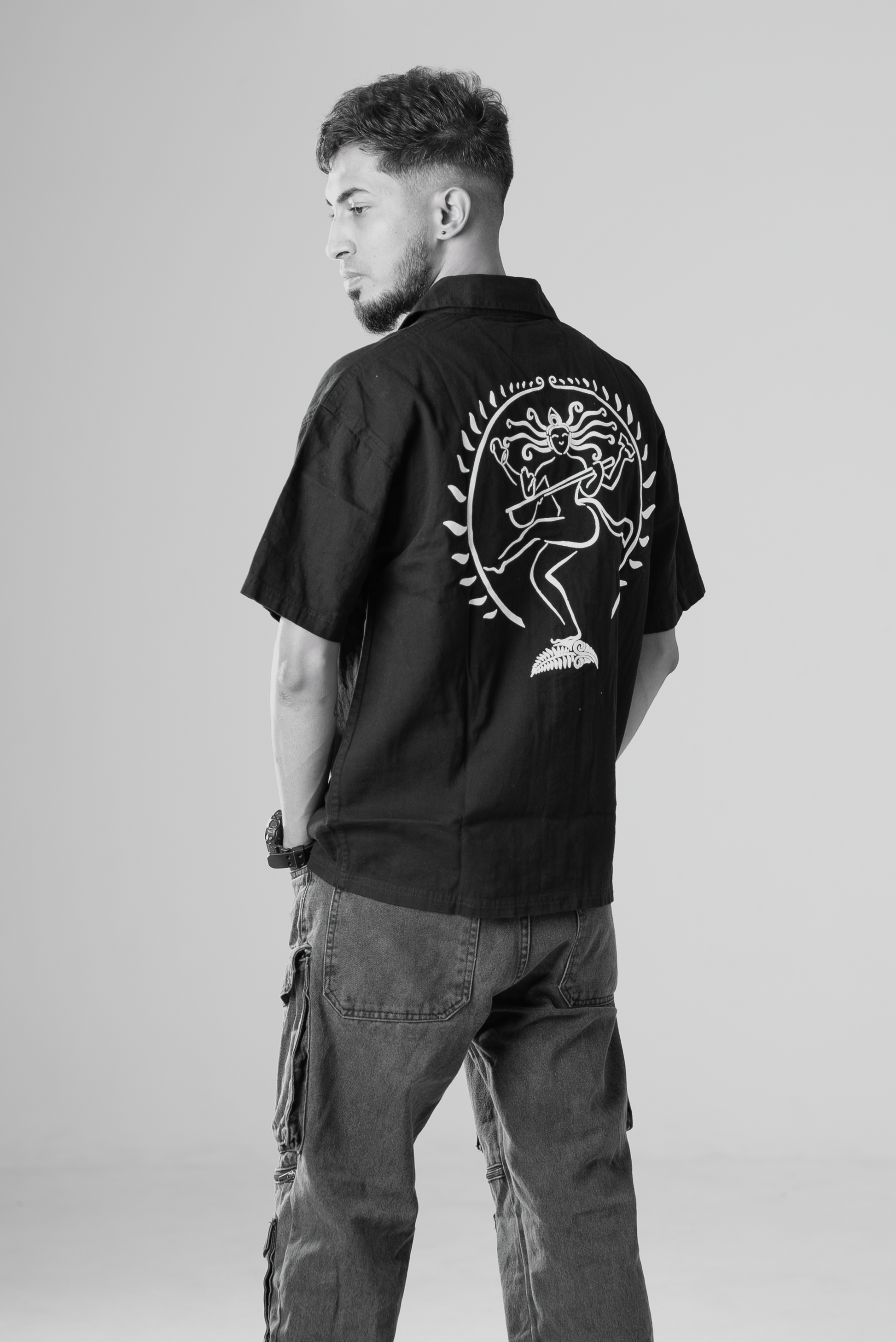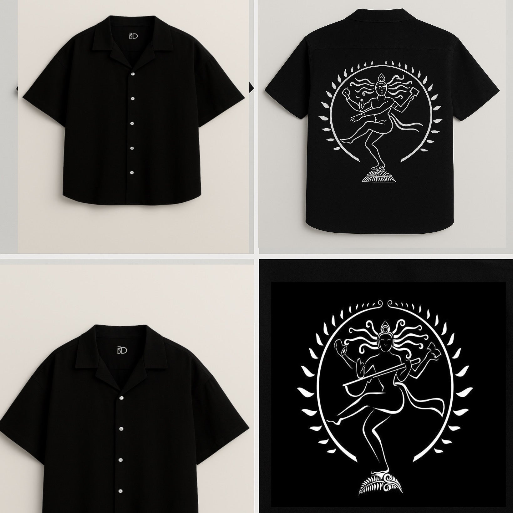 Step into the shadows of style with Cosmic Dance, a black oversized shirt that flows like dark poetry. Inspired by the celestial chaos of the universe and the rhythm of rebellion, this piece is more than just clothing — it’s a mood.